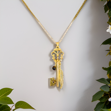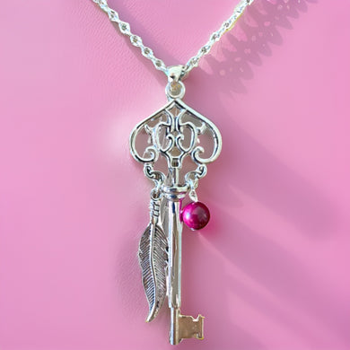 Skeleton Key Necklace with Pink Tiger’s Eye