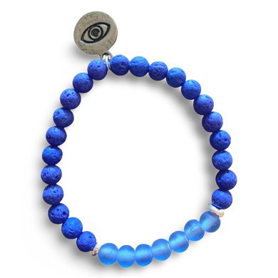 Evil Eye Protection Blue Lava Rock and Frosted Blue Glass Bracelet